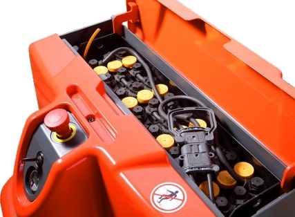 Der PT 16L ist mit einer deutschen Blei-Säure-Batterie mit 24V/110Ah ausgestattet. Optional kann das Fahrzeug auch mit einer Lithium-Batterie konfiguriert werden, welche im Vergleich zu herkömmlichen Blei-Säure-Batterien ein einfaches Zwischenladen und deutlich mehr Ladezyklen ermöglicht, was eine höhere Lebensdauer und somit eine längere Nutzung des Gerätes garantiert. Des weiteren sind sie auslaufsicher und sicher in der Handhabung, was die Arbeitssicherheit deutlich erhöht.Multifunktionales Bedienfeld