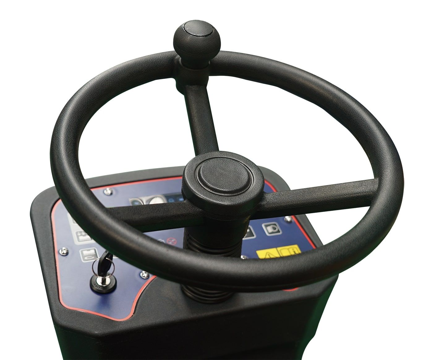 - Das große Lenkrad verfügt über einen Lenkknauf, wodurch es dem Bediener ermöglicht wird, das Fahrzeug mit nur einer Hand zu lenken, wodurch das komfortable Bedienen erhöht wird.