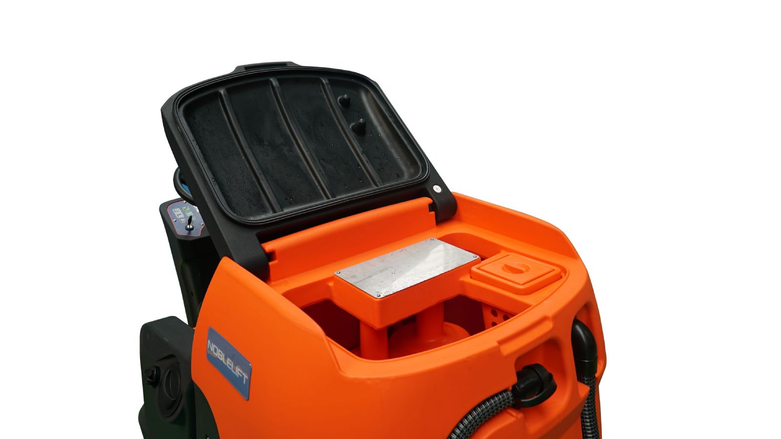 Die große Noblelift Aufsitz-Scheuersaugmaschine ''NR860P'' mit Frontantrieb und Doppelbürsten