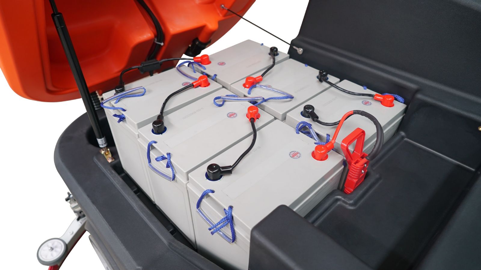 Ausgestattet mit 6 leistungsstarken und wartungsfreien 6V/200Ah Blei-Säure-Batterien ist mit einmaligen Laden eine durchgängige Nutzung von 6 Stunden möglich, wodurch die Arbeitseffizienz deutlich gesteigert wird